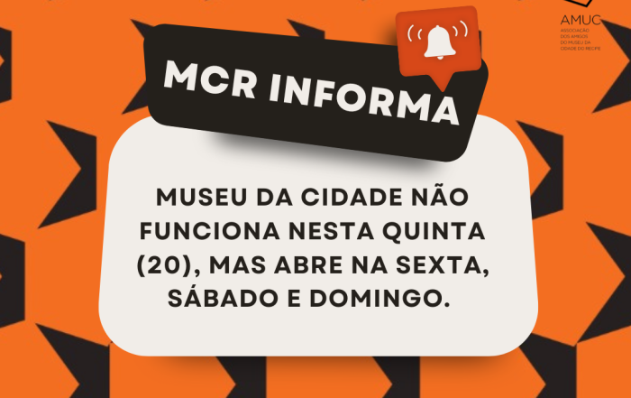 O Museu da Cidade do Recife estará fechado para visitação nesta quarta-feira (16), feriado municipal de Nossa Senhora do Carmo, [...]